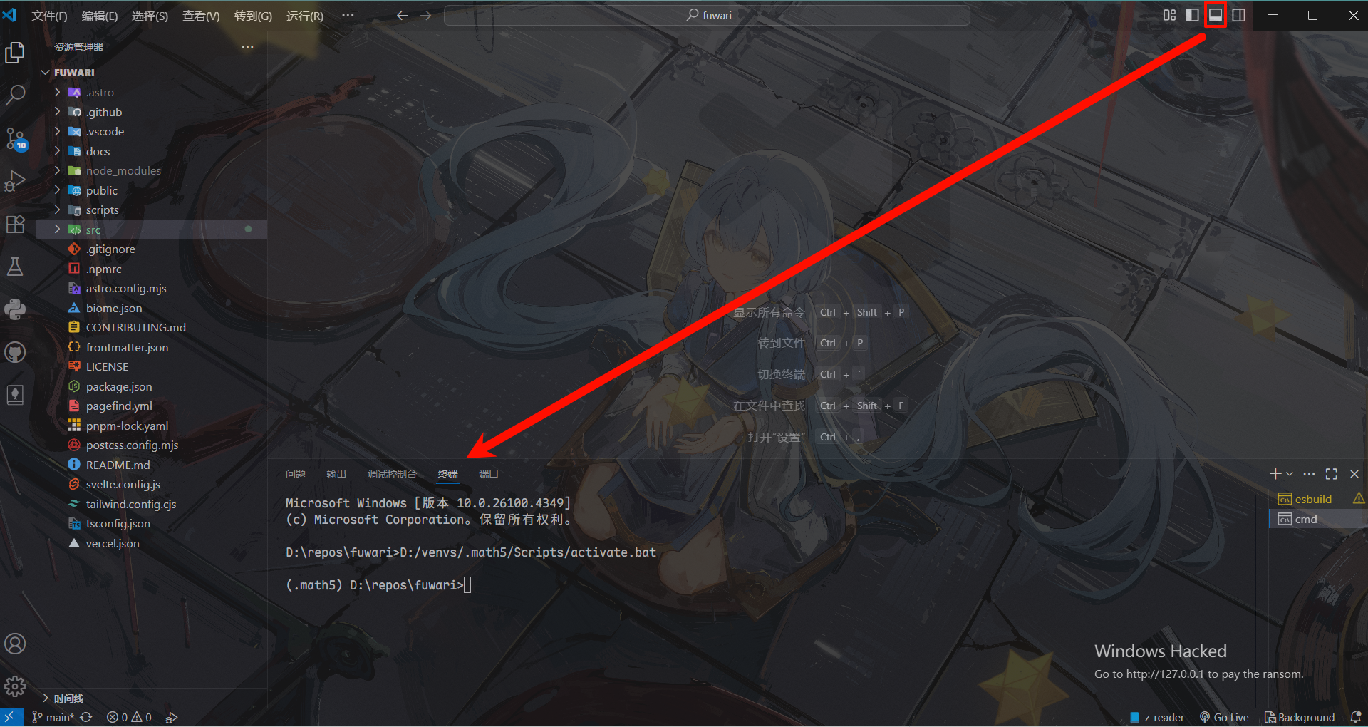 打开vscode的终端:
