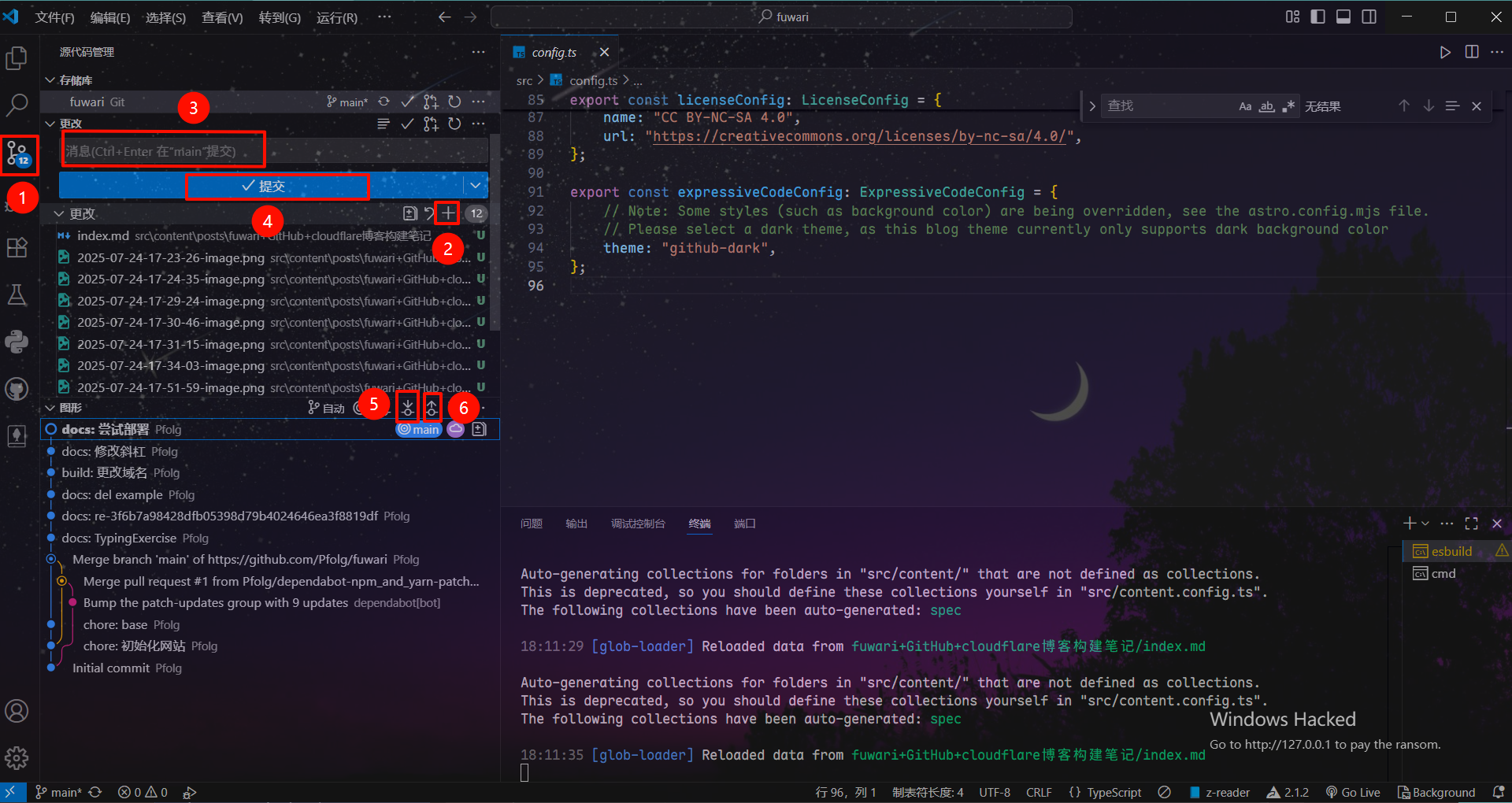 这里和配置文件的修改可以参考:Fuwari静态博客搭建教程 - AcoFork Blog